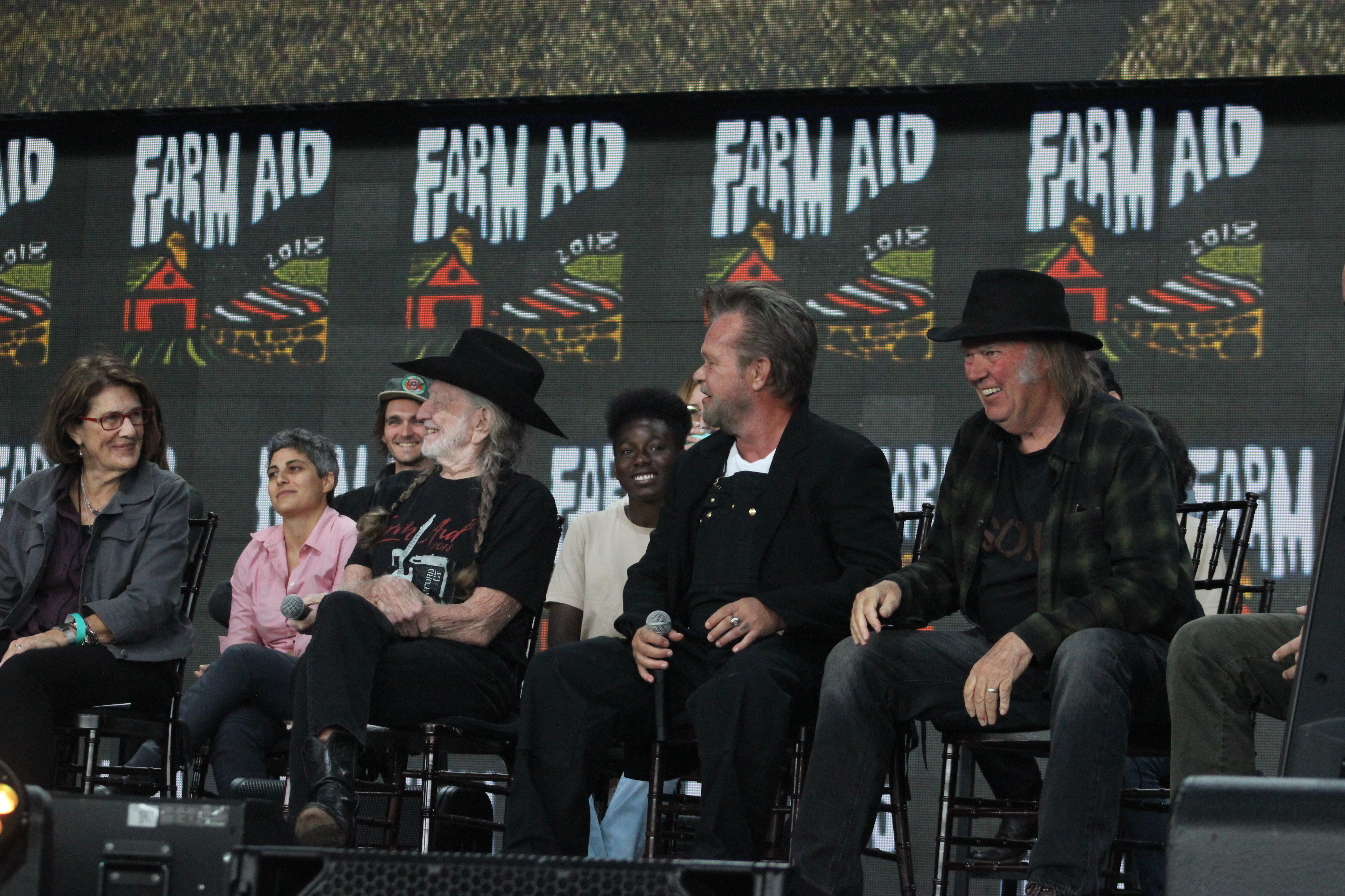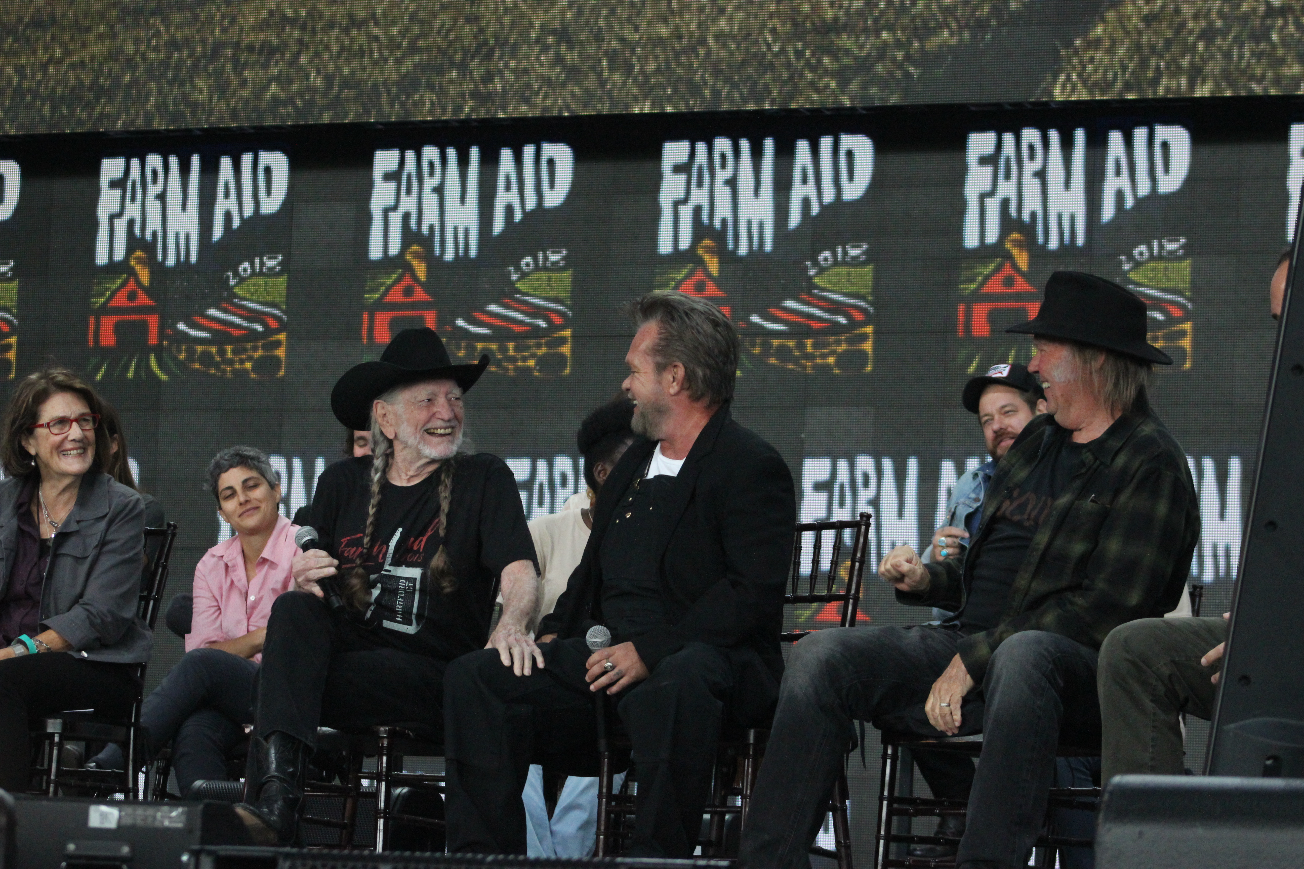 The pre-concert press conference featuring Farm Aid board members Willie Nelson, Neil Young, John Mellencamp and Dave Matthews went deeply into the plight of the small family farm. Several local Ct. farms were featured in short films and their owners spoke live on their trials and tribulations. The press conference was heavily attended by a bevy of farmers from throughout the U.S. After touching speeches from each of the board members and other dignitaries, the music began.