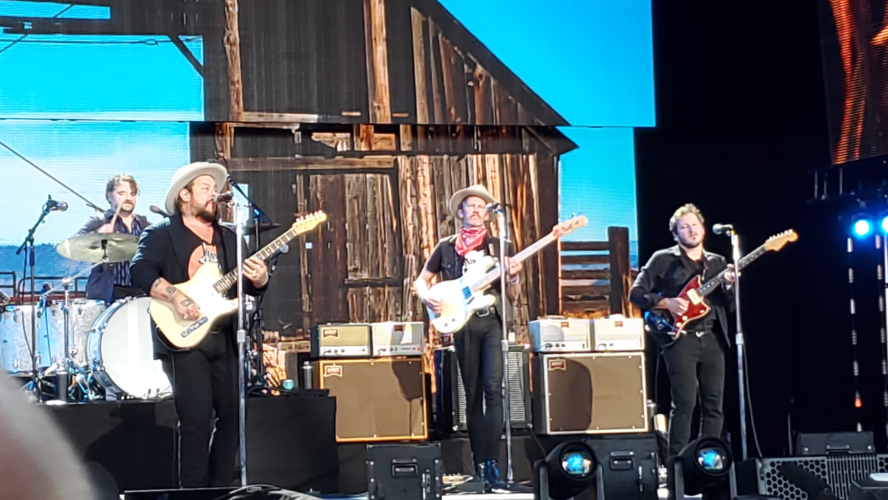 Nathaniel Rateliff & The Night Sweats was another entity I wanted to experience. I’ve seen Rateliff several times and it’s always a party. It was no exception at Farm Aid 2021. From the opening notes of “Shoe Boot” till freshly released closer “Love Don’t”, the Xfinity Theater was a rockin’. Rateliff is a determined showman whose gritty vocals matches the exalted funk of The Night Sweats perfectly. The band is tremendously talented and spunky. The Farm Aid patrons ate it up. Another new song, “Survivor” hit the mark and the addictive “S.O.B.” hit the crowd with an explosive hail of sonic cannon fire. Lukas Nelson joined the band for a brassy version of the Band’s “The Shape I’m In”.