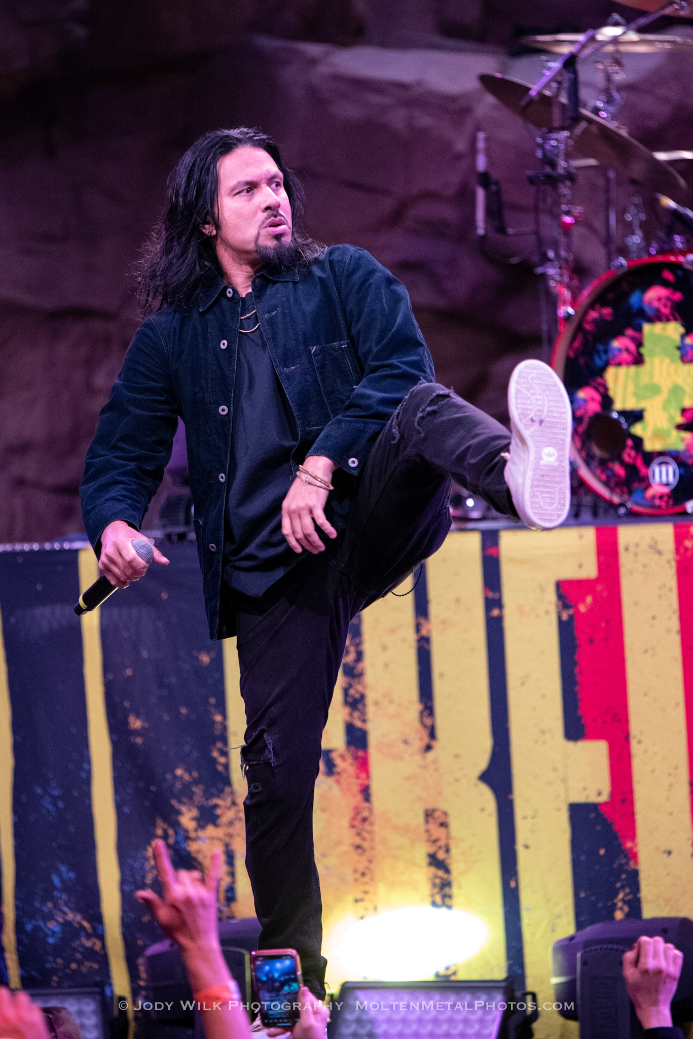 “Let The Chaos Reign” from their 2021 release Versatile came next and the crowd soaked up the propulsive energy. The song is plainly killer and their incendiary spirit was infectious. The house was enjoying every minute. The audience relished Kakaty’s brief foray before the band kicked into “Circles” and “Dead Reckoning”. Both are on Skeletons and Pop Evil executed amazing renditions. “Work” kept the fury alive. By now, the Wolf Den was thunderstruck. Pop Evil was destroying everything.